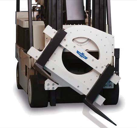 旋轉(zhuǎn)叉可對(duì)貨物進(jìn)行夾持和叉持兩種搬運(yùn)方式。可用于對(duì)諸如箱狀貨物、板條箱、紙箱以及托盤化貨物和廢料包等貨物進(jìn)行運(yùn)輸、驗(yàn)收和訂單揀選等操作,還可進(jìn)行無(wú)托盤搬運(yùn)操作。旋轉(zhuǎn)叉夾可夾持貨物進(jìn)行360度連續(xù)旋轉(zhuǎn)。